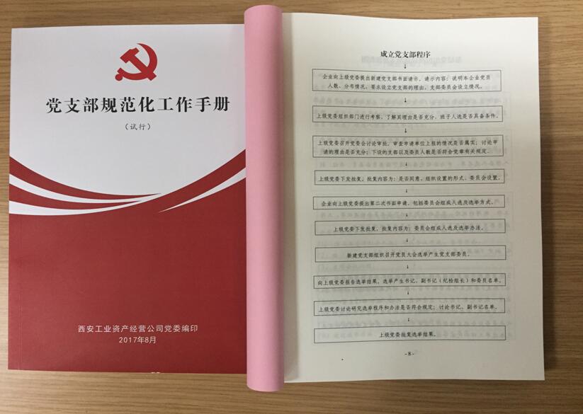 為使公司系統基層黨組織工作更加規范化、標準化、制度化,不斷增強基層黨組織的凝聚力和戰斗力,進一步推進企業的政治文明、物質文明和精神文明建設,根據《中國共產黨章程》及有關規定,公司黨委結合公司系統實際,針對權屬企業產業結構不同,基層黨組織建設參差不齊、推進不一的情況,組織制訂了公司系統《黨支部規范化工作手冊》。